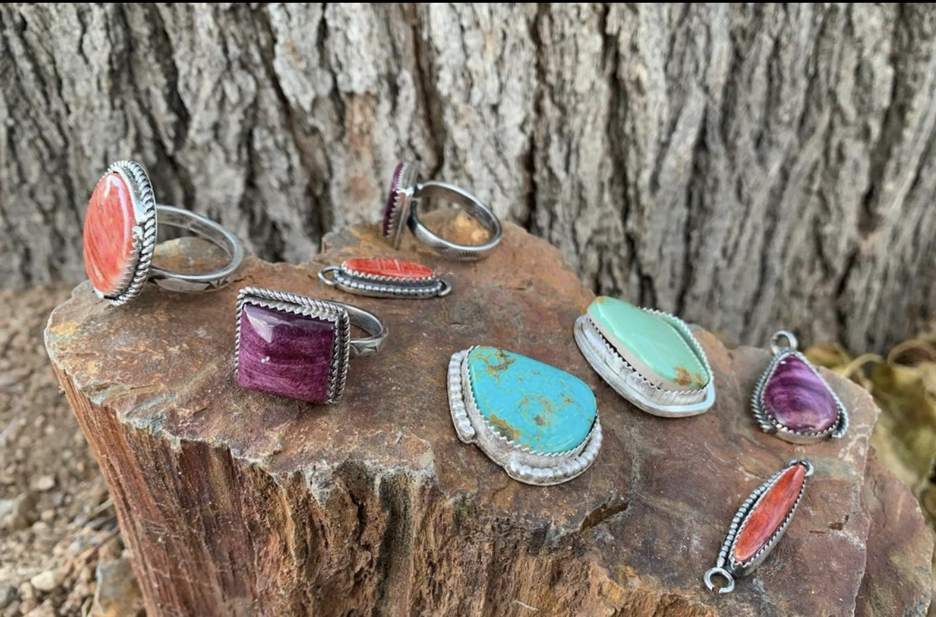 Jessica says she’s inspired by nature and traditional Navajo and Native American designs but now that she lives in Albuquerque, she’s also influenced by modern, minimalistic designs. “I want to produce jewelry that’s authentically made by a Navajo artist. I’ve seen people creating and using the exact designs that weren’t made by Navajos and passing it off as their own. I feel like this part of our culture is becoming a lost art, but at the same time, there’s becoming a resurgence and refreshment of a pride in our native heritage and wanting to educate others about our existence. We’re not a legend. We’re American people that live here just as others do. There was a period of imposed assimilation where many Indigenous people were not allowed to carry our traditions with pride and now there’s a period of renewal in a different way. I’d hope in America now there’s more of an honoring of people’s heritage and people’s differences.”