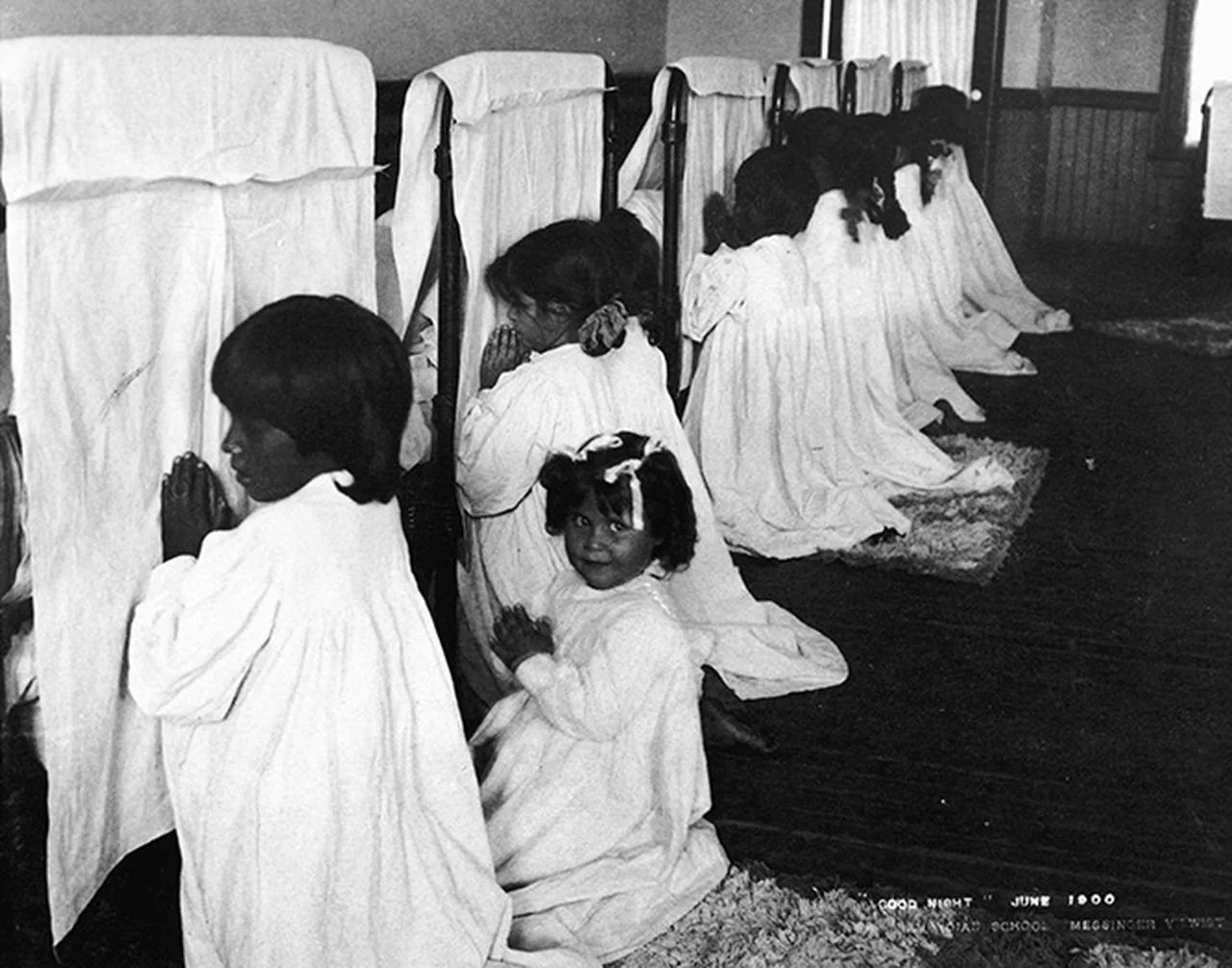 The conditions at these schools were truly awful, and something that seems almost unbelievable to us today. After being torn from their families, or lied to in order to allow their “release” into official care, these children and their families experienced ultimate heartbreak and disrespect. The kids were given white names (some too young to even remember what their family name was), forced to speak English and were not allowed to practice their culture. Their hair was cut and their religions were forbidden. They took classes on how to properly complete manual labor such as farming and housekeeping. When they were not in class, they were expected to do the upkeep of the schools. Unclean and overpopulated living conditions led to spread of disease and many students did not receive enough food. Since diseases like tuberculosis were not yet treatable, children often died at these schools, without their parents’ knowledge or ability to give them a proper burial according to their culture. In the majority of schools, students experienced a variety of abuses—everything from sexual to physical to emotional and mental abuse. If students tried to escape, they often didn’t get very far—bounties were offered for them, and faced with unimaginable suffering, many young students resorted to taking their own lives. Sometimes students who died were buried in the school cemetery in coffins made by their classmates.