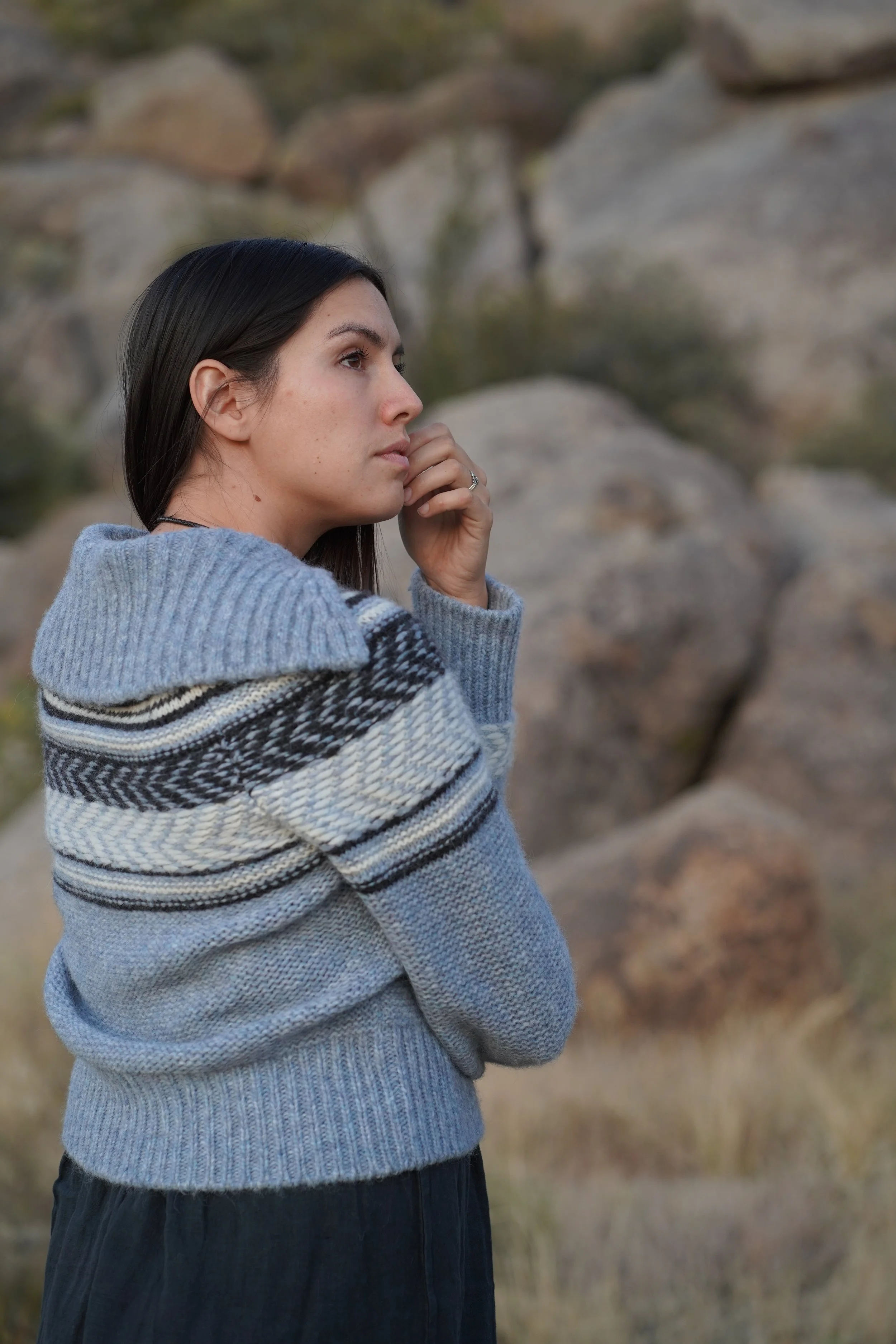 The Eyedazzler is a design that means so much to me. This design is based on my original Eyedazzler design (Orange and brown sweater). Made with Alpaca, and is the softest, squishiest cardigan.